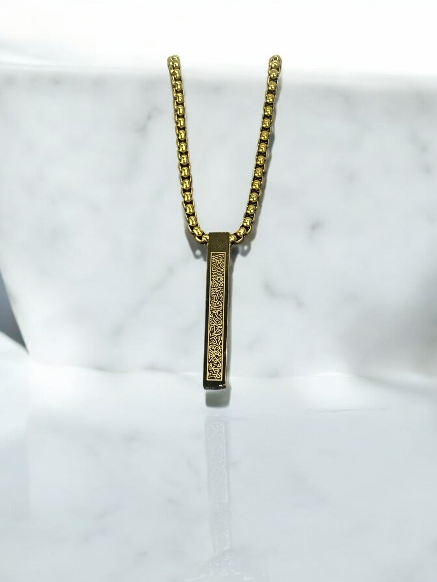 Ayat al-Kursi Golden Bar Pendant with Chain