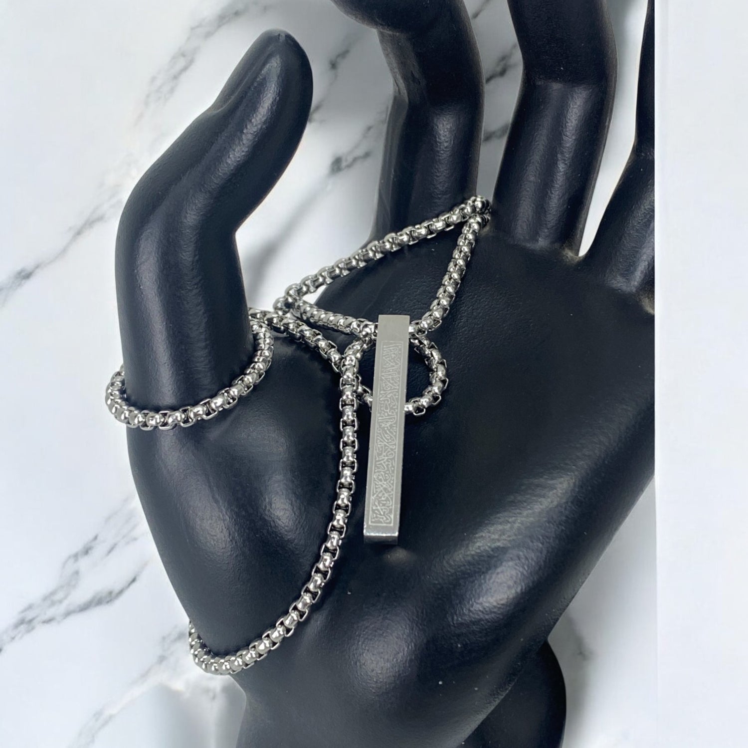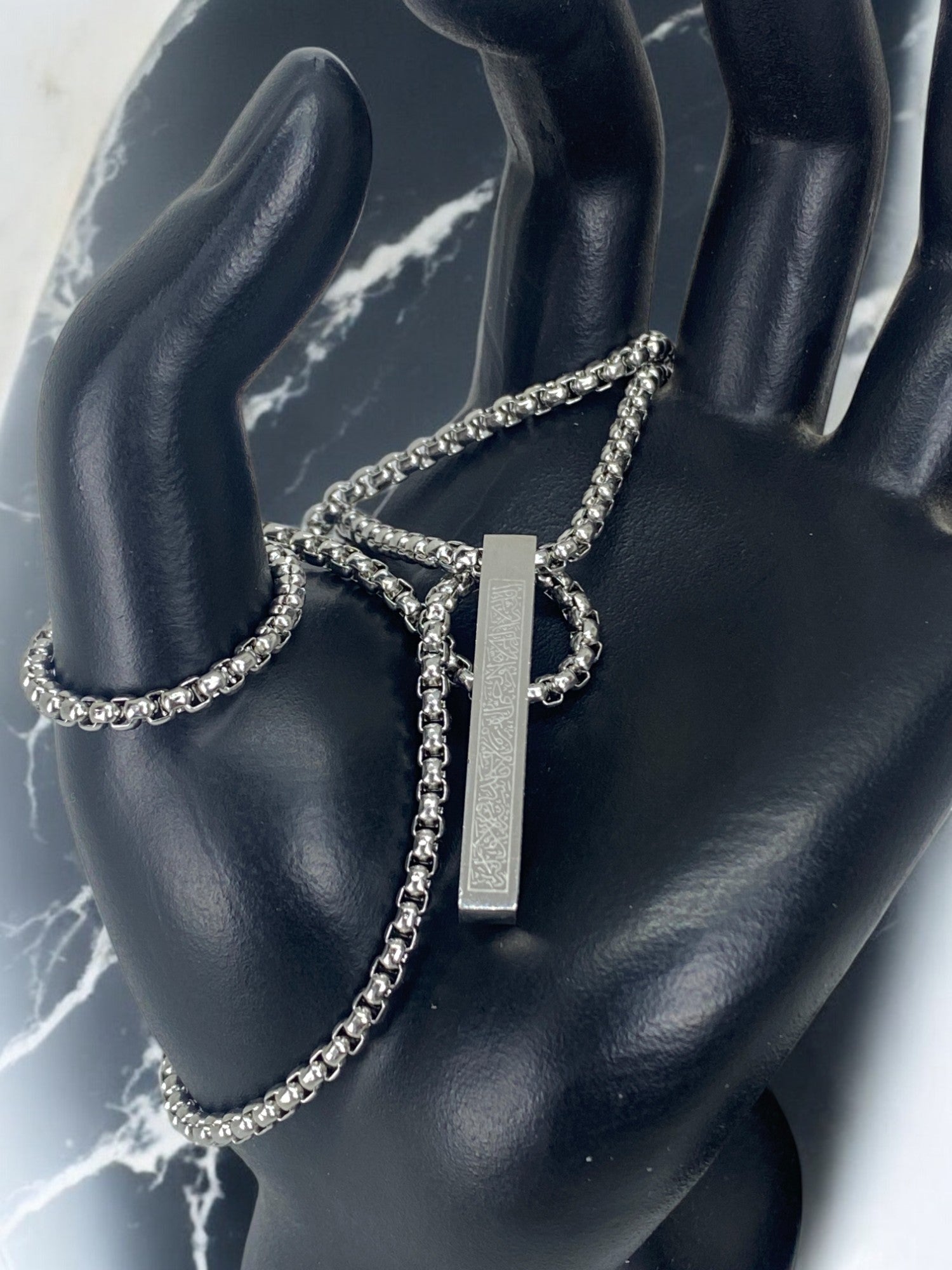 Ayat al-Kursi Silver Bar Pendant with Chain